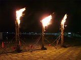 ![]() ヨシたいまつ 赤々と天に伸びる炎を、招待選手らが広場や大会本部のあった琵琶湖ホテル内の窓から楽しみました。 |